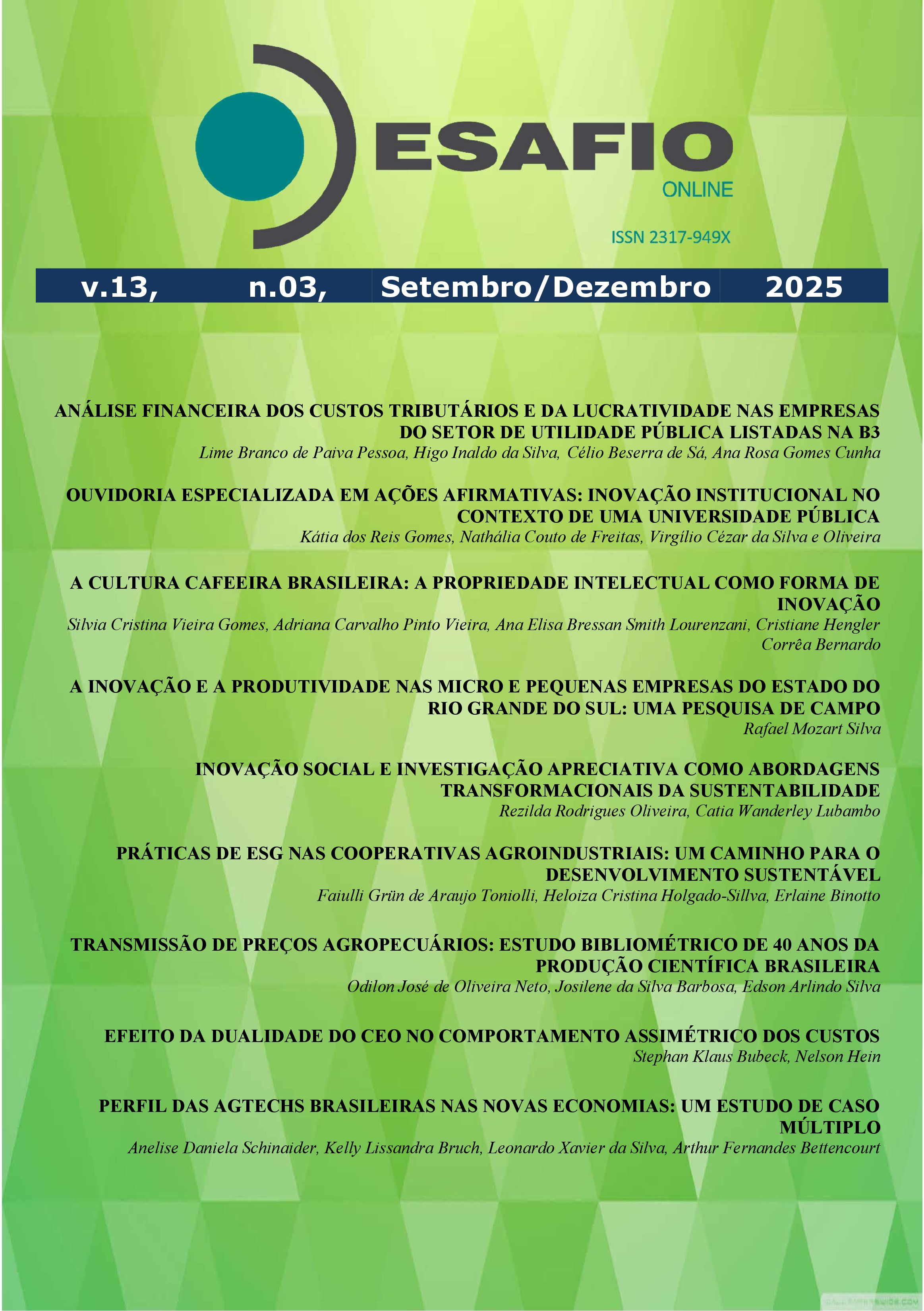 A Revista Desafio Online é uma publicação quadrimestral de livre acesso editada pela Escola de Administração e Negócios da Universidade Federal de Mato Grosso do Sul e tem como missão ser uma fonte de pesquisa e disseminação do conhecimento para as comunidades acadêmica e gerencial das áreas de Administração, Ciências Contábeis e Economia.
