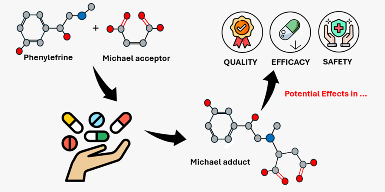 The combination of different active substances in drug products is responsible for optimizing therapies and improving patient adherence. However, the development process of these formulations is highly challenging due to differences in the physicochemical properties of the active ingredients, which can impact formulation stability. Thus, the present study evaluated the incompatibility profile in five different combinations/formulations containing phenylephrine hydrochloride and the maleate compound as a counter-ion by measuring the active pharmaceutical ingredient (API) content and the degradation products (succinyl phenylephrine adducts). This incompatibility occurs due to reactions via Michael addition. The quantification of the API and degradation products was performed using an HPLC-DAD system. The analyses revealed that in all formulations where there is no physical separation between phenylephrine and the maleate counter-ion, a decrease in phenylephrine content and appearance of impurities were observed. Furthermore, the physical separation between the active ingredients was effective, and no markers of the respective reaction were identified. Based on these findings, it is evident that the pharmaceutical form impacts formulation stability, and the reduction in API content along with the increase in impurities may negatively affect product efficacy, quality and safety parameters. This reinforces the need for additional information regarding regulatory registration aspects.