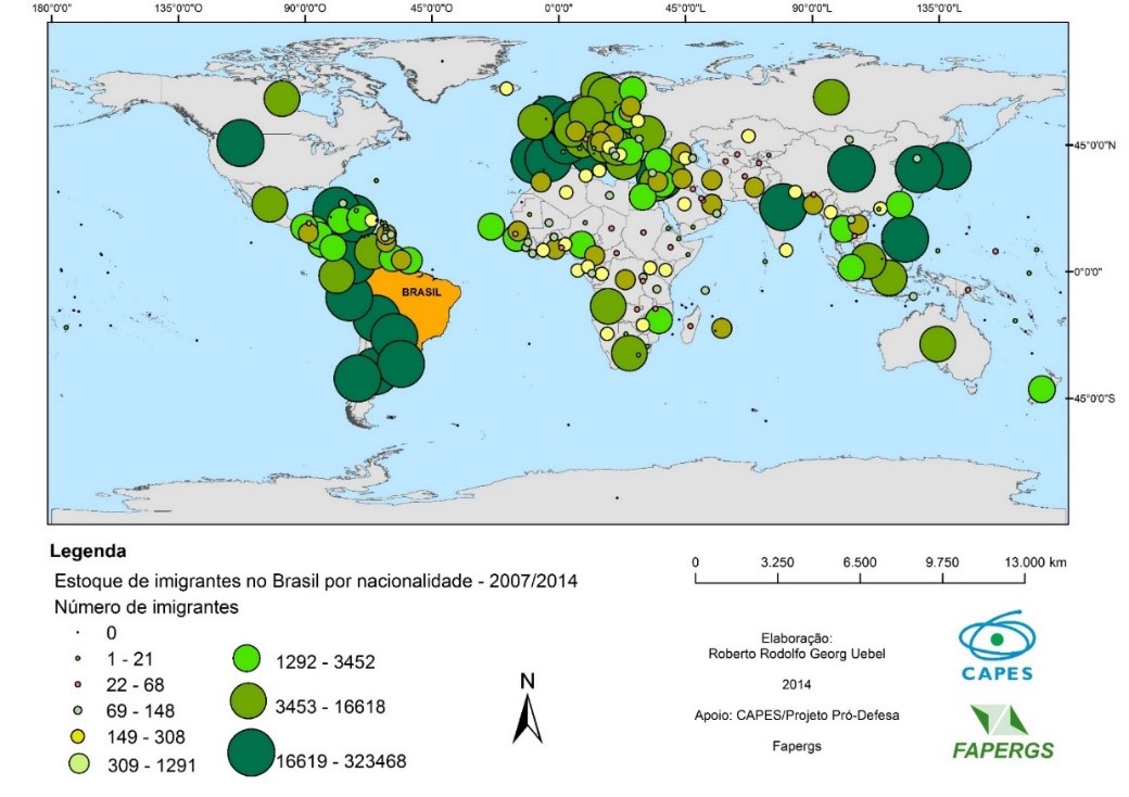 UEBEL, Roberto Rodolfo Georg. Análise do perfil socioespacial das migrações internacionais para o Rio Grande do Sul no início do século XXI: redes, atores e cenários da imigração haitiana e senegalesa. Dissertação. 248 f. Porto Alegre: Universidade Federal do Rio Grande do Sul, 2015. (Mestrado em Geografia). Disponível - em: http://hdl.handle.net/10183/117357.